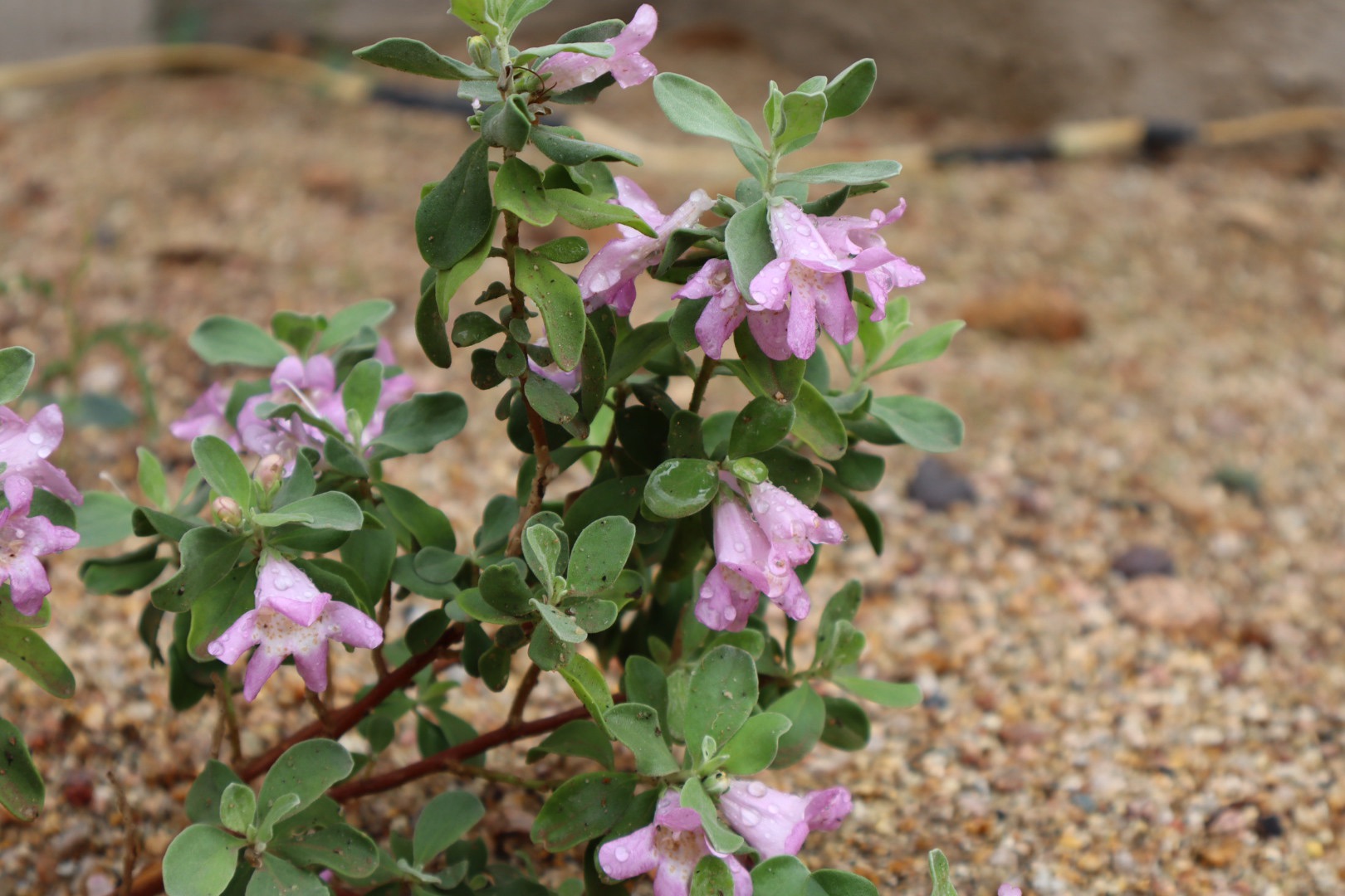 Some varieties of Leucophyllum that bloom especially well include Civano’s San Antonio Rose, L. langmaniae Lynn’s Legacy (a classic developed by Lynn Lowrey), ‘Convent’ sage, Heavenly Cloud sage (updated form of the Green Cloud), White Cloud sage (a variety with white flowers if you can find it) or L. frutescens ‘Rio Bravo’.